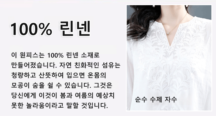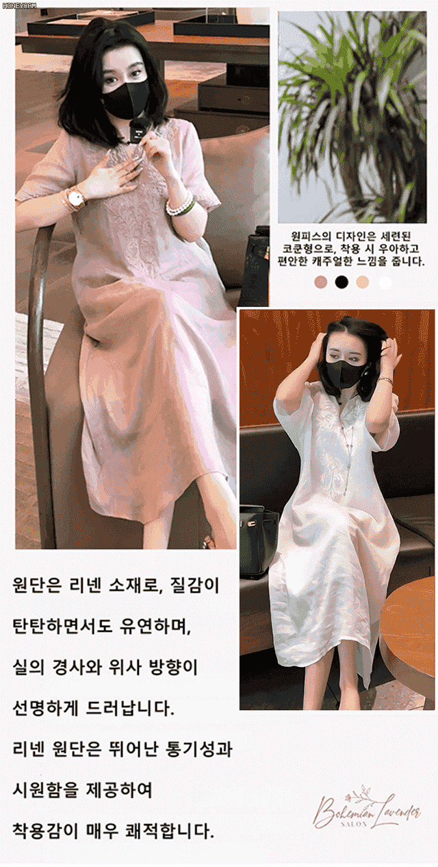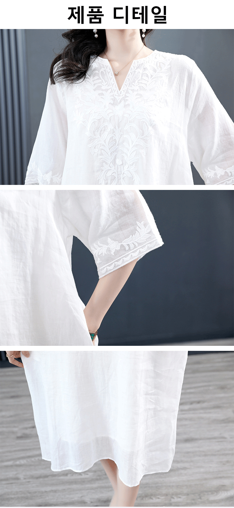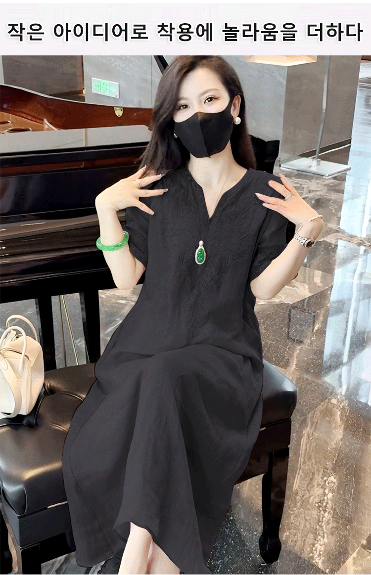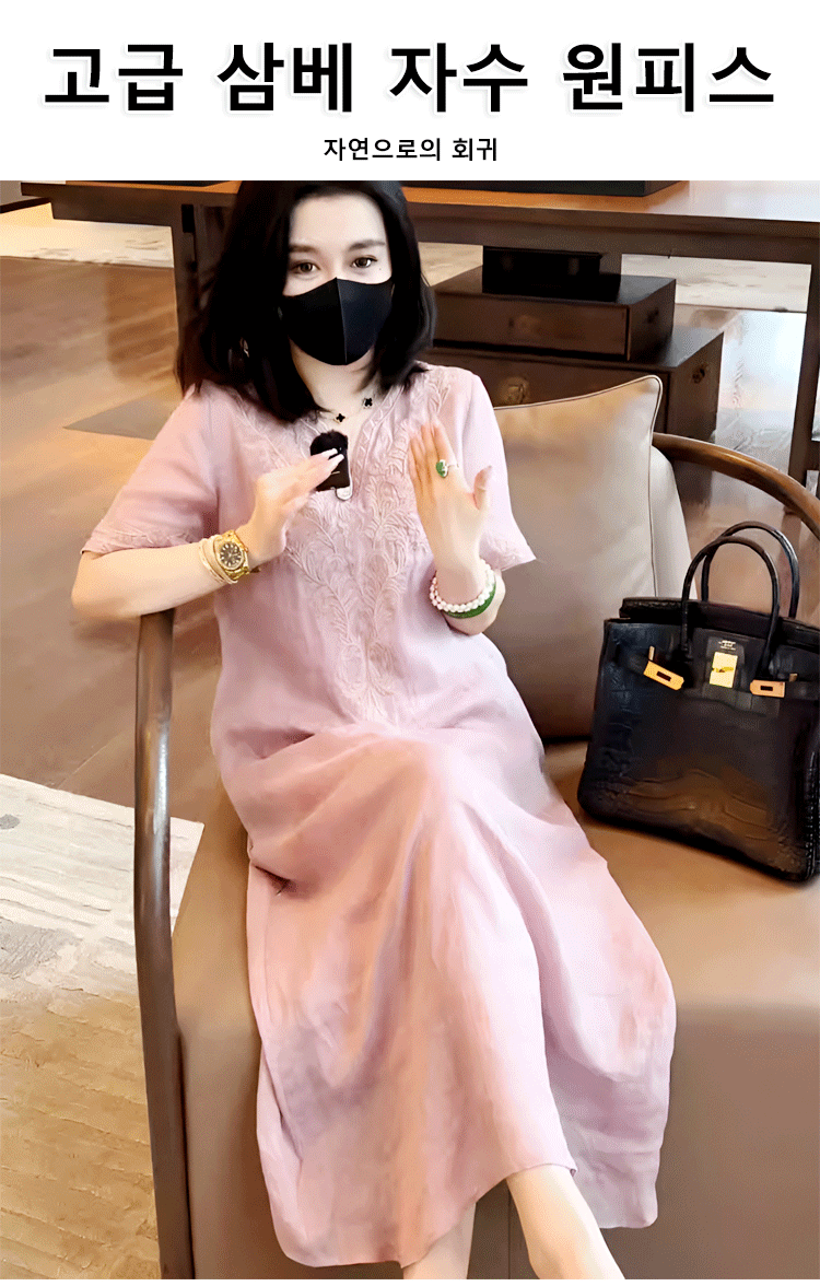 고급 삼베 자수 원피스